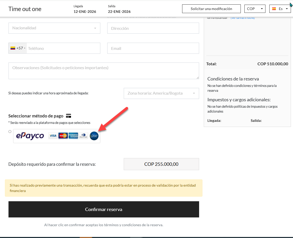 Activar ePayco para el motor de reservas: