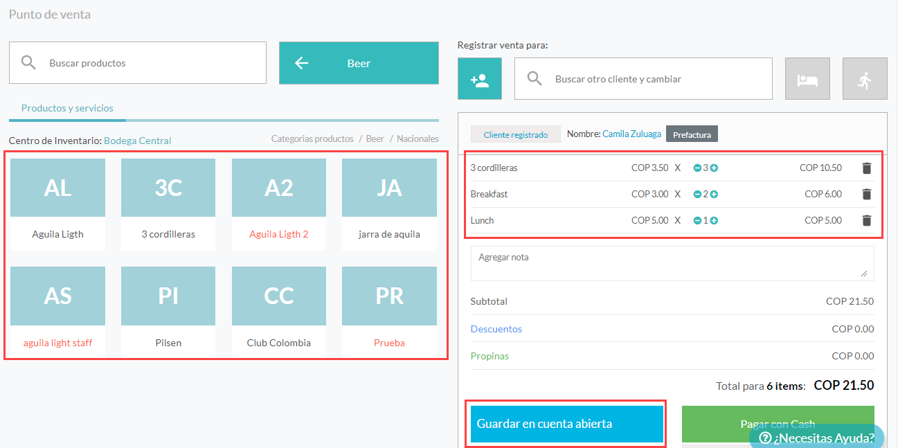 Registre ventas abiertas que puede usar como mesas o pedidos de clientes que están consumiendo durante la estadía. Ideal para bares y restaurantes.