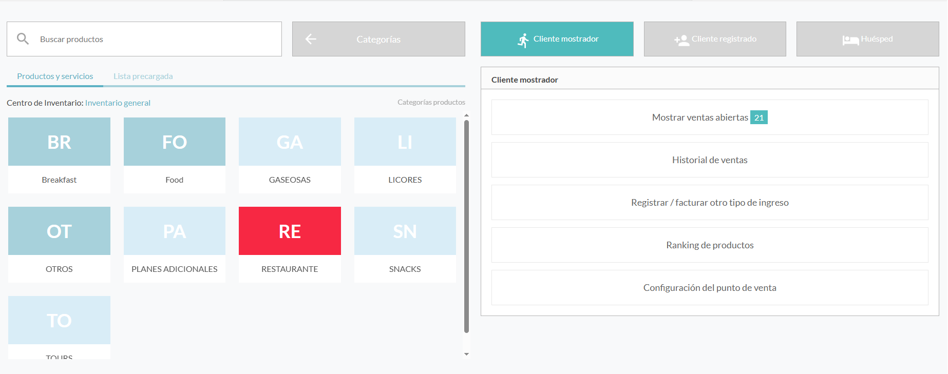 Por último, el botón gris con el icono de una mano que lo puedes utilizar para regresar al menú principal del punto de venta.