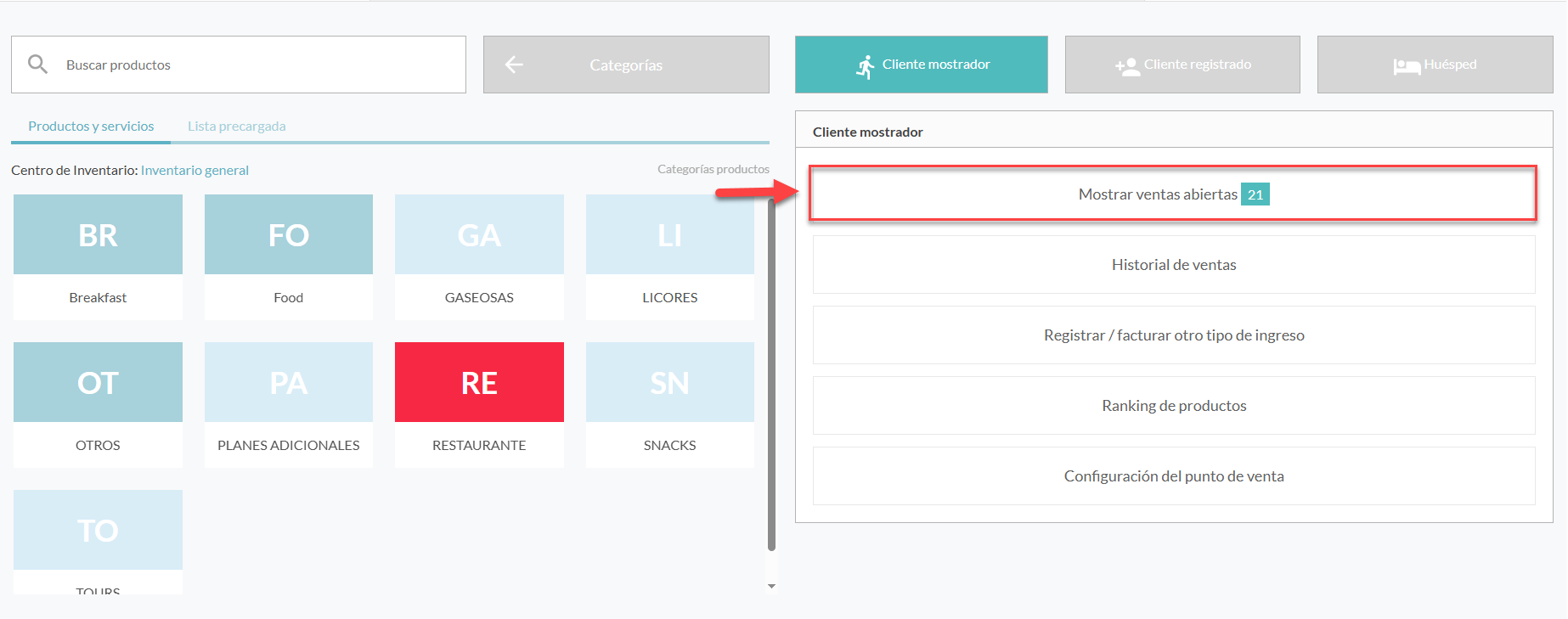 En este momento, vas a ubicar la opción “Mostrar ventas abiertas” en el punto de venta y darás clic.