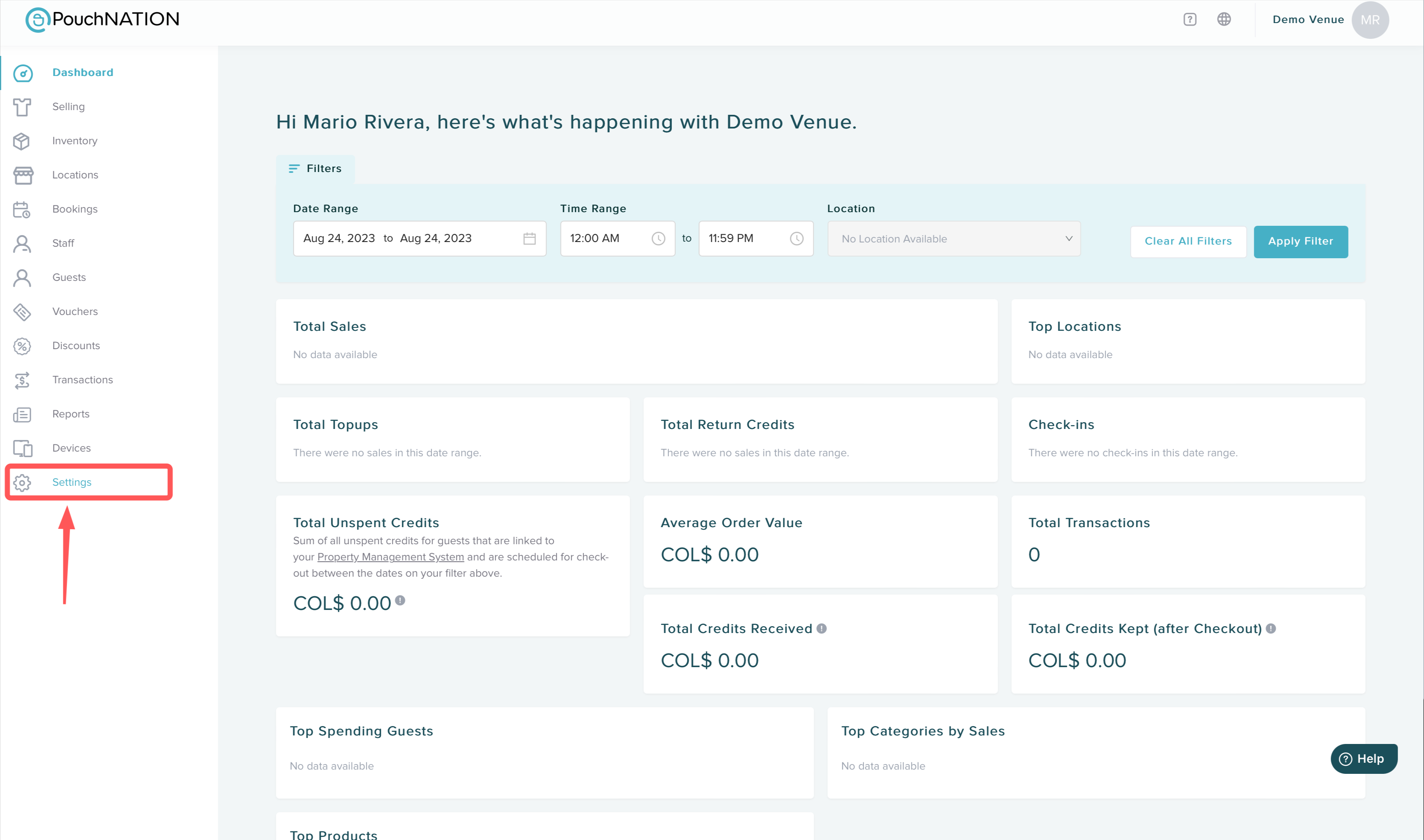 Ya estando en PouchNATION te dirigirás al menú principal y darás clic en “Settings”.