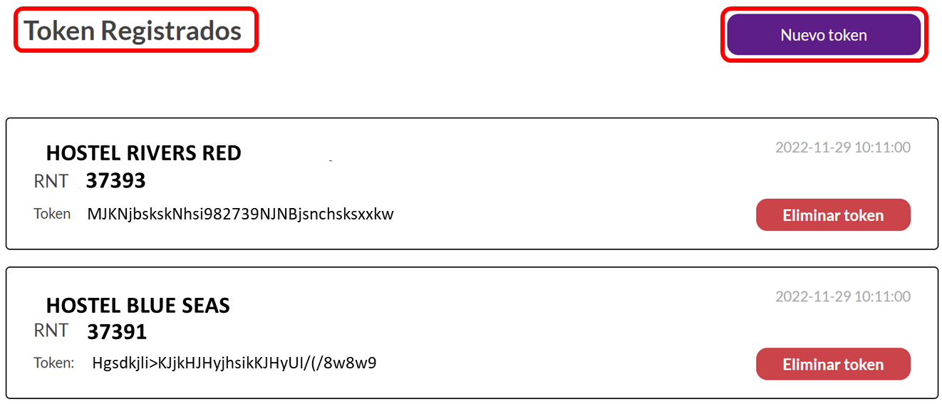 Todos los token que registres, te aparecerán en la pantalla de “Token Registrados” al momento de guardarlos.