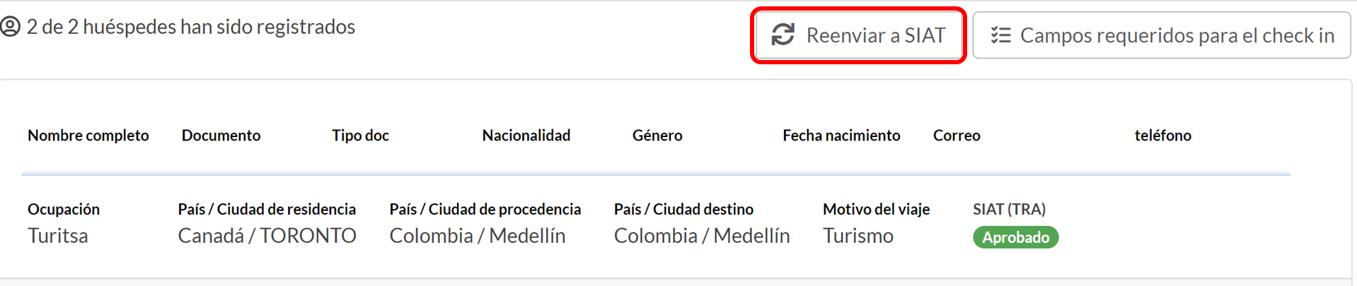 Dentro de la reserva, en la sección “SIAT-TRA” también puedes ver el estatus de la información y para reenviarla clic en “Reenviar a SIAT” y listo.