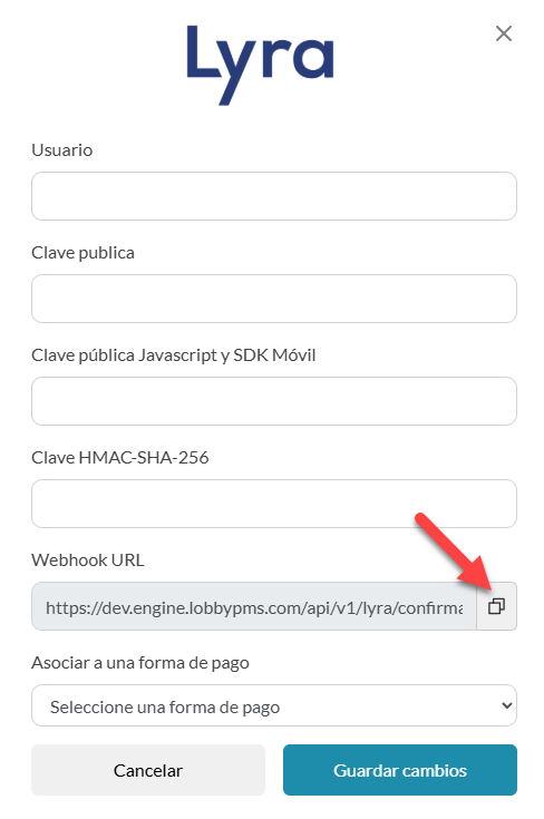 Pegar las llaves publicas en tu cuenta de LobbyPMS: