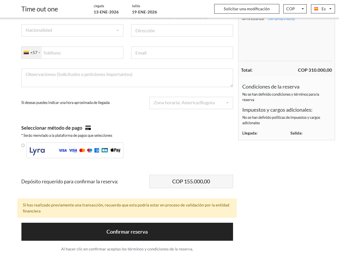 Puedes ingresar al motor de reservas y realizar una prueba con una reserva para verificar que el botón de Lyra esté activo al momento de completar la reserva.
