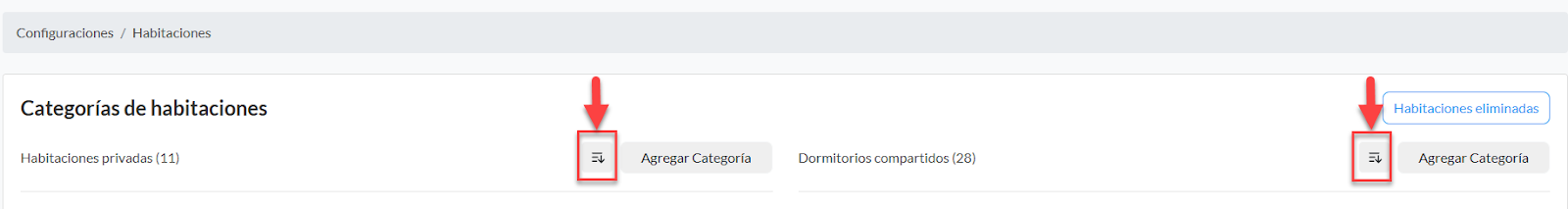 Puedes editar el nombre y el orden de cada habitación dentro de la categoría o puedes cambiarla de categoría o eliminarla.