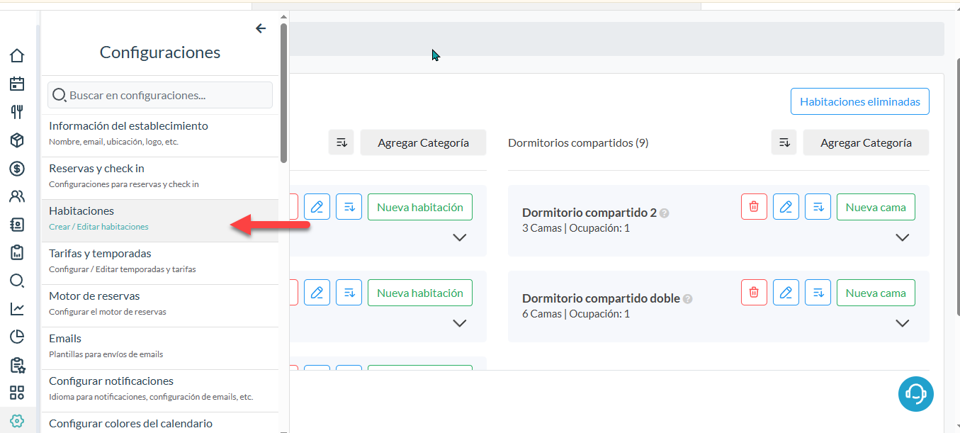 Para empezar debes ir a Menú > Configuraciones > Habitaciones.