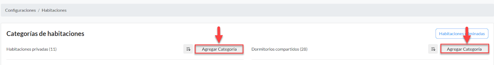 Para configurar debes dar clic en "Agregar Categoría" donde crearás una habitación.