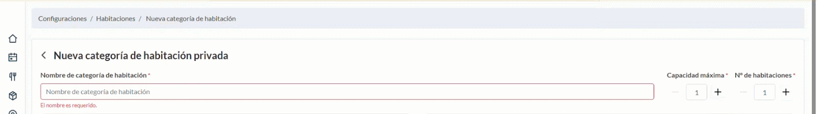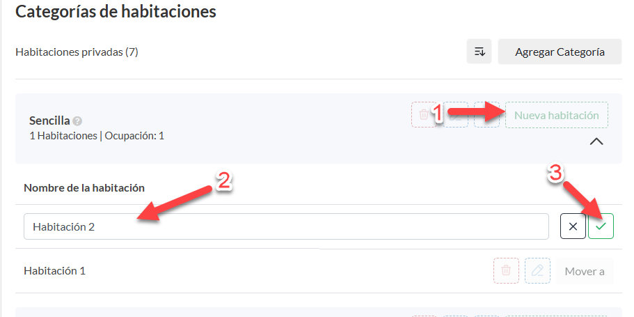 Si deseas añadir una nueva habitación dentro de la categoría, usa el botón "Nueva Habitación"