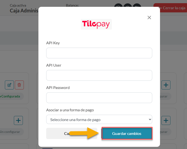 15. Una vez termines, baja hasta encontrar el botón de “Guardar cambios” y dale click, listo, tu conexión con Tilopay está terminada