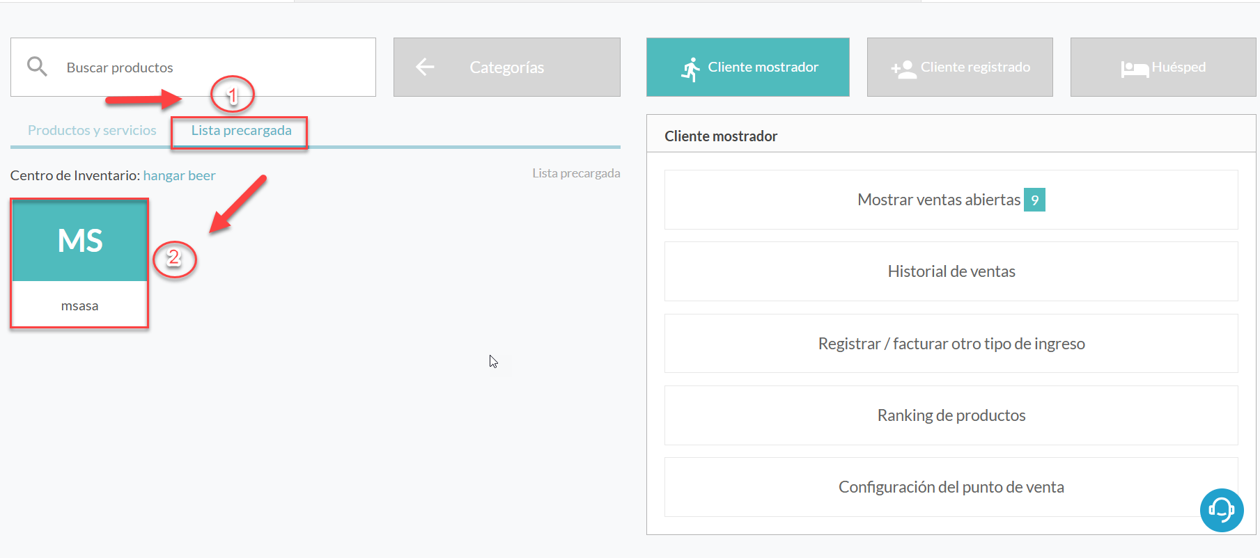 - En punto de venta, aparecerá una pestaña llamada Lista precargada.