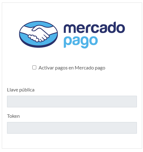 👉 3- Activa la opción Pagos con Mercadopago y agregue todos los parámetros solicitados: Llave pública y Token.