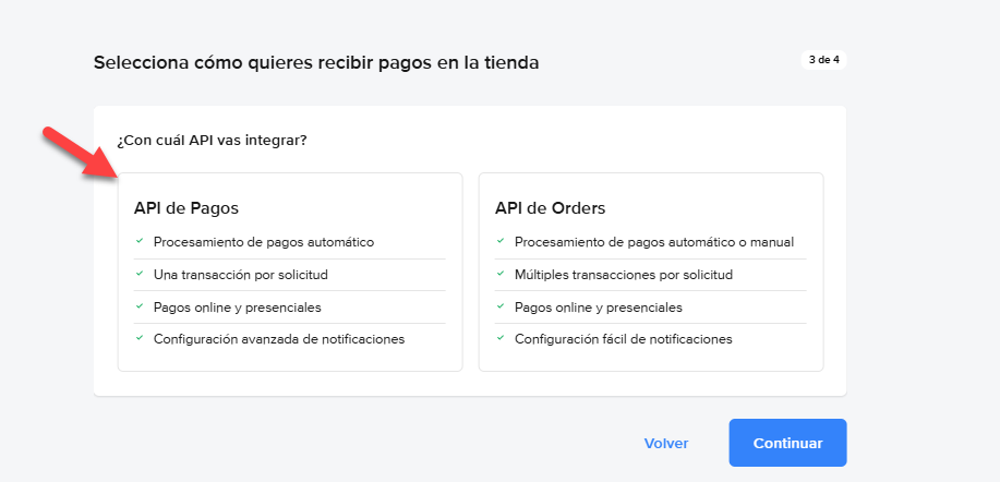 👉 6- Selecciona "API de pagos" y da clic en continuar.