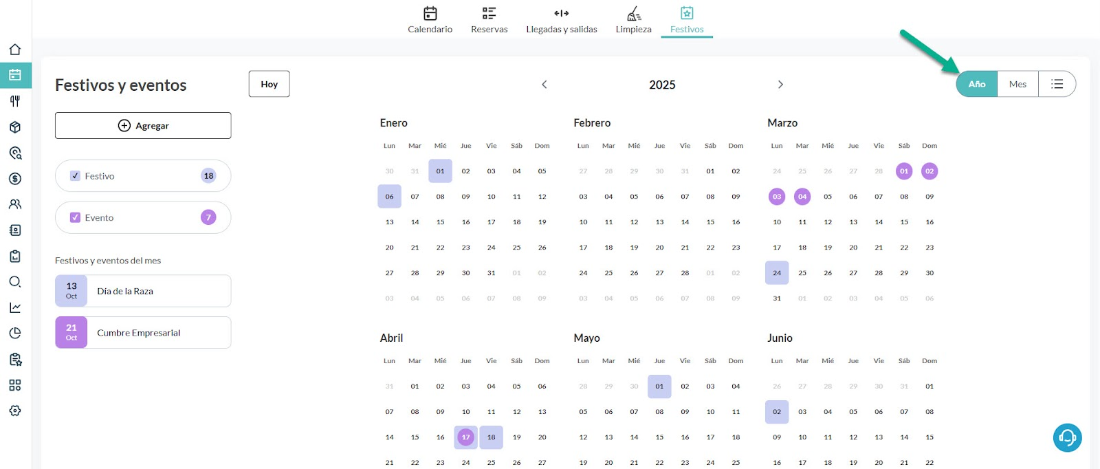 Te permitirá anticiparte a las fechas importantes, optimizar tu gestión de reservas y ofrecer un mejor servicio a tus huéspedes, asegurando que tu equipo siempre tenga visibilidad de los días más relevantes.
