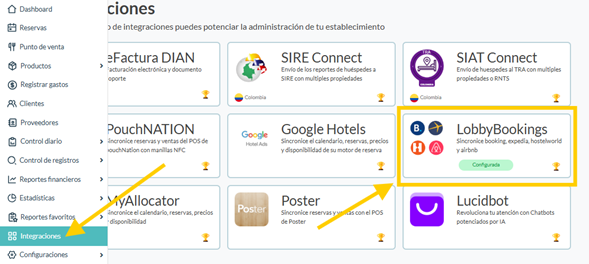 Al finalizar el proceso has culminado con la integración de Booking.com y Lobby observando lo siguiente en la interfaz: