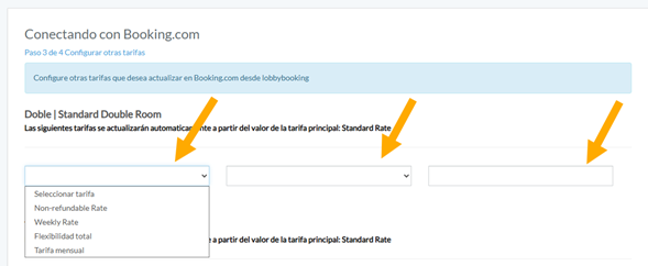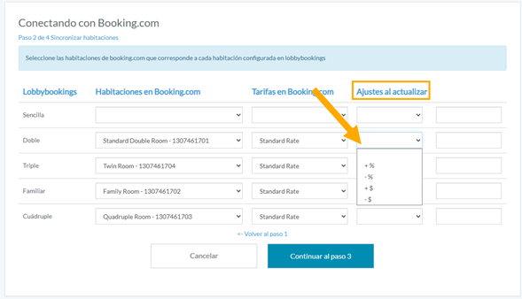 Paso 2 de 4 - Mapeo de habitaciones y tarifas de Booking.com: