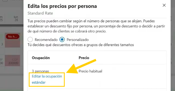 Ten en cuenta que la ocupación estándar del anuncio debe estar en la ocupación más alta para la habitación (Si la habitación es máximo para 3, allí debe estar en 3 personas):