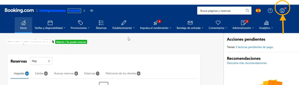 Lo encontrarás en la parte superior izquierda en la extranet de Booking.com: