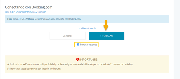 Nota importante: Debes tener en cuenta que las reservas no hayan sido creadas de manera manual en el calendario antes de la conexión ya que al importarlas se pueden duplicar.