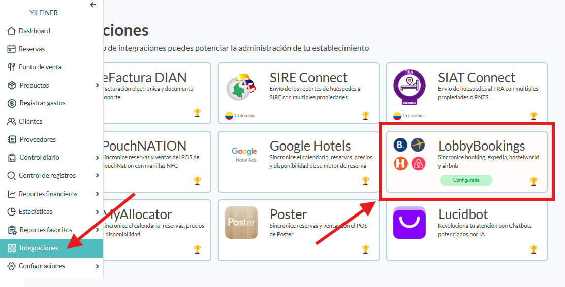 O desde integraciones en Lobby, le das clic en la función de LobbyBookings: