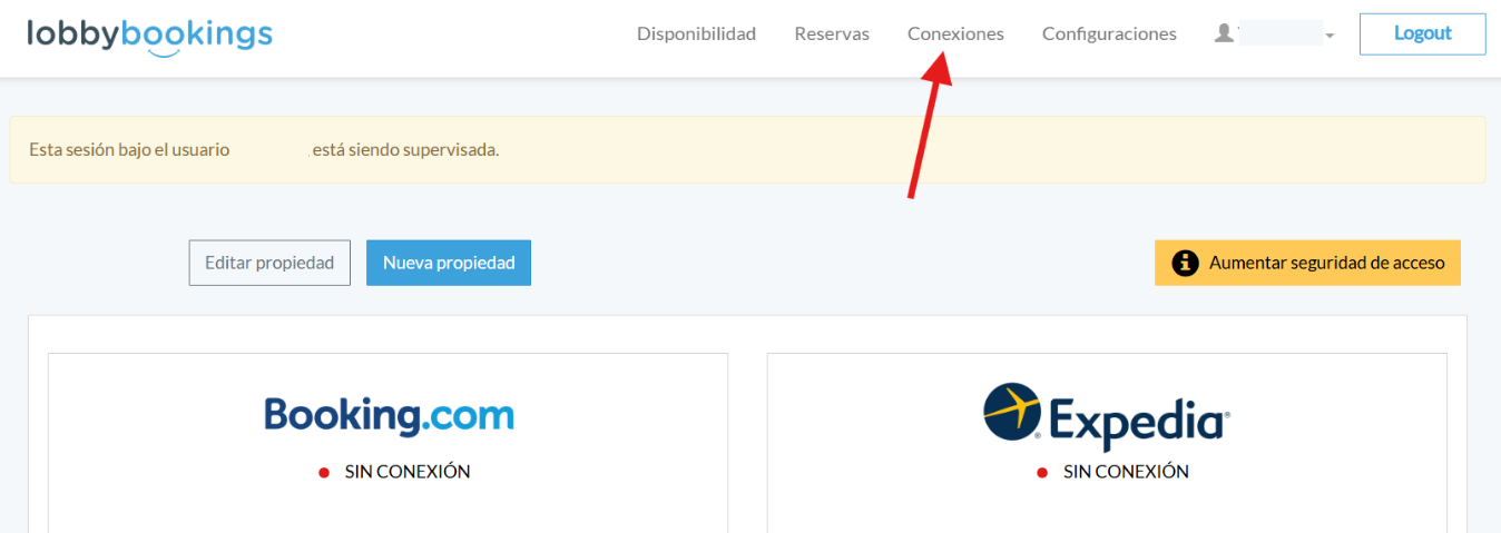 Una vez dentro de LobbyBookings, en el menú superior, das clic en Conexiones.