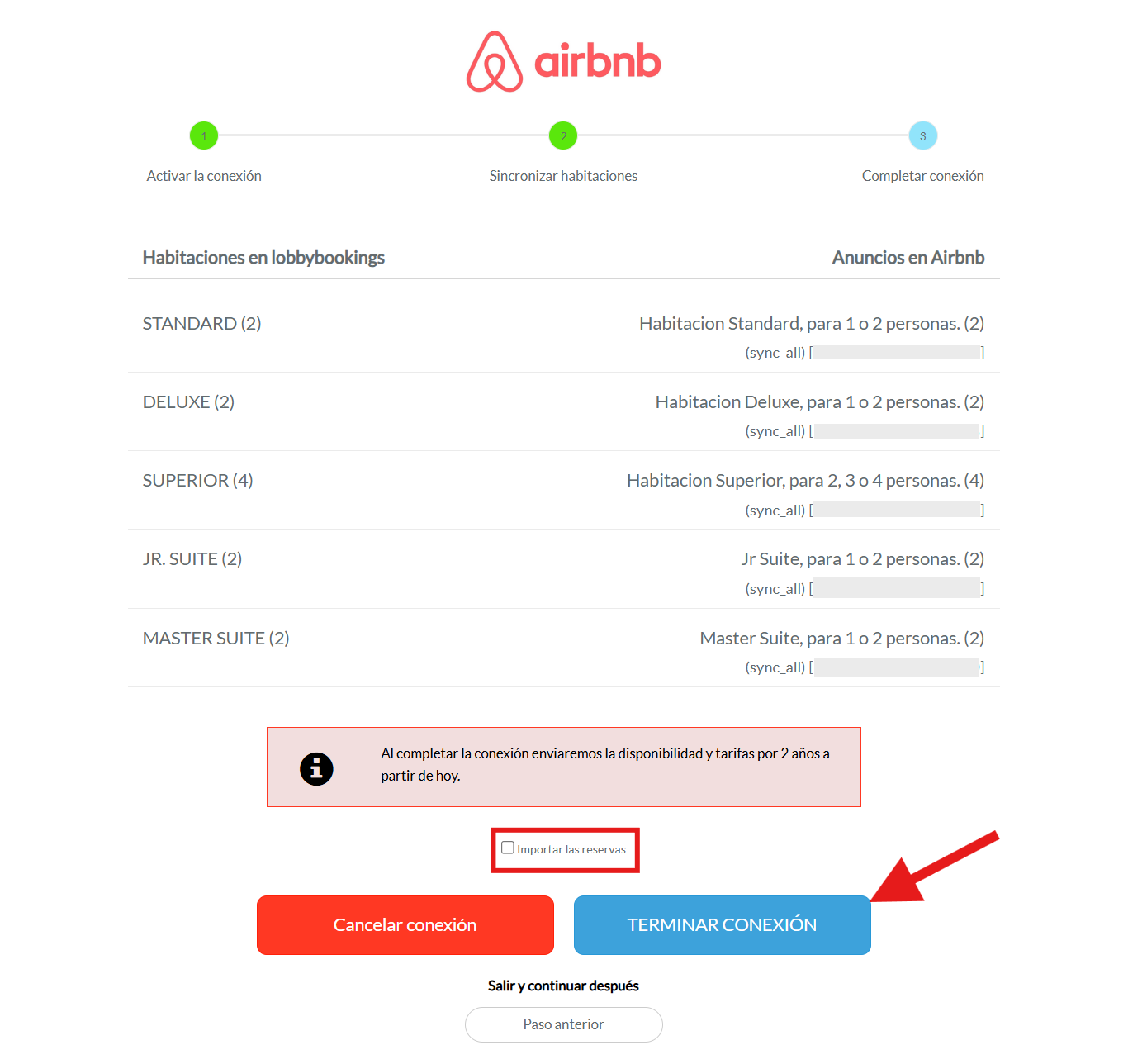 Nota importante: Debes tener en cuenta que las reservas no hayan sido creadas de manera manual en el calendario antes de la conexión ya que al importarlas se pueden duplicar.