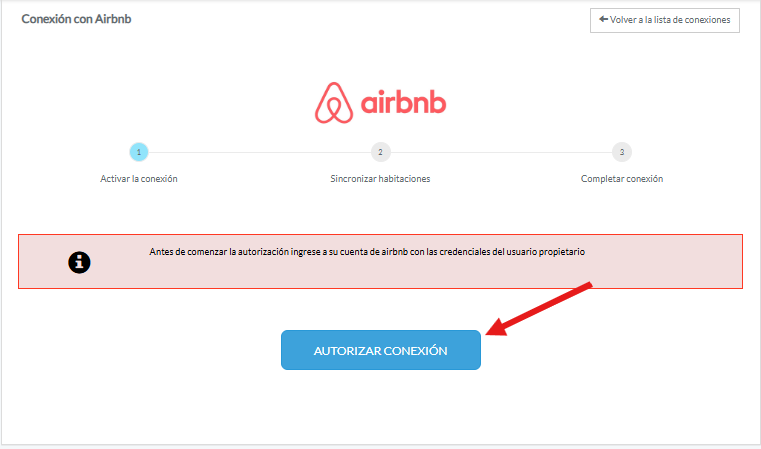 A continuación, te muestra la interfaz del primer paso para la integración desde LobbyBookings, debes dar clic en autorizar conexión: