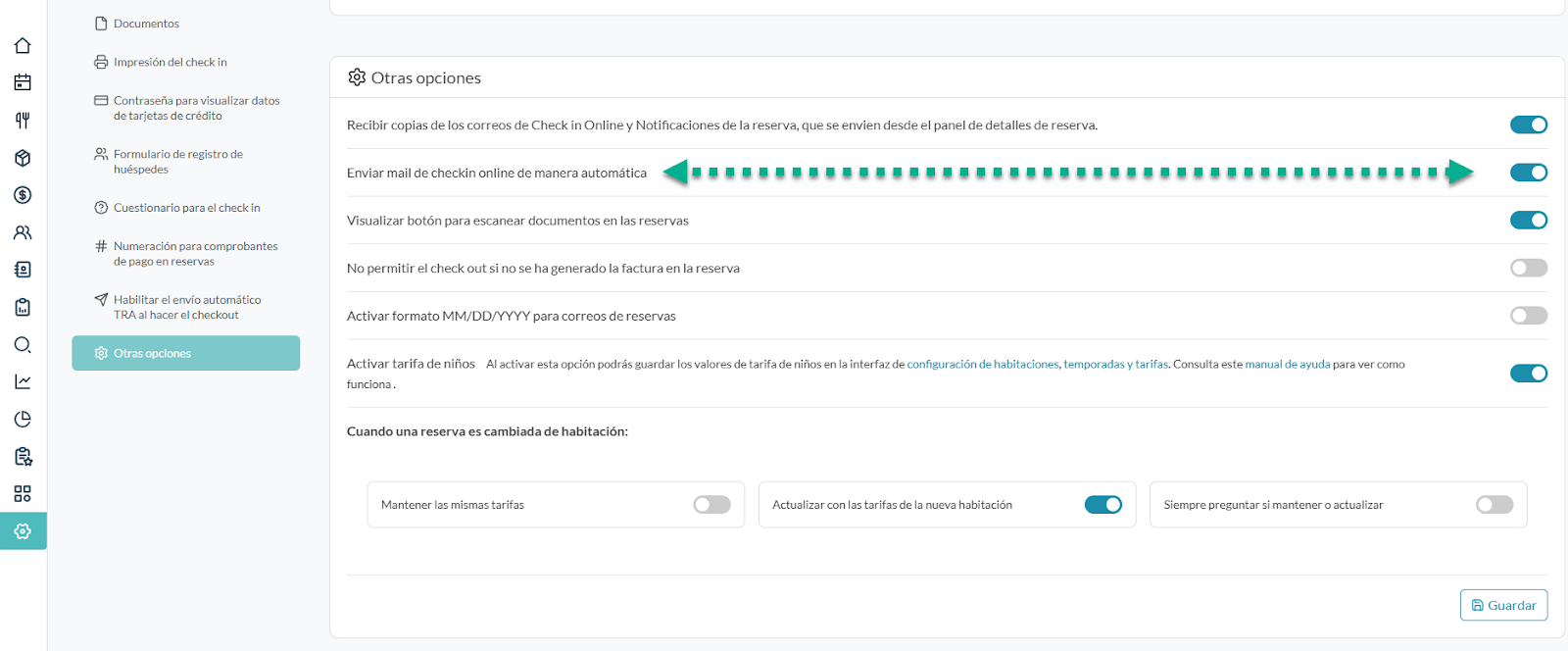 También debes activar la opción “Enviar mail de check-in online de manera automática” en Lobbypms Configuraciones → Reservas y Check-in → Otras opciones