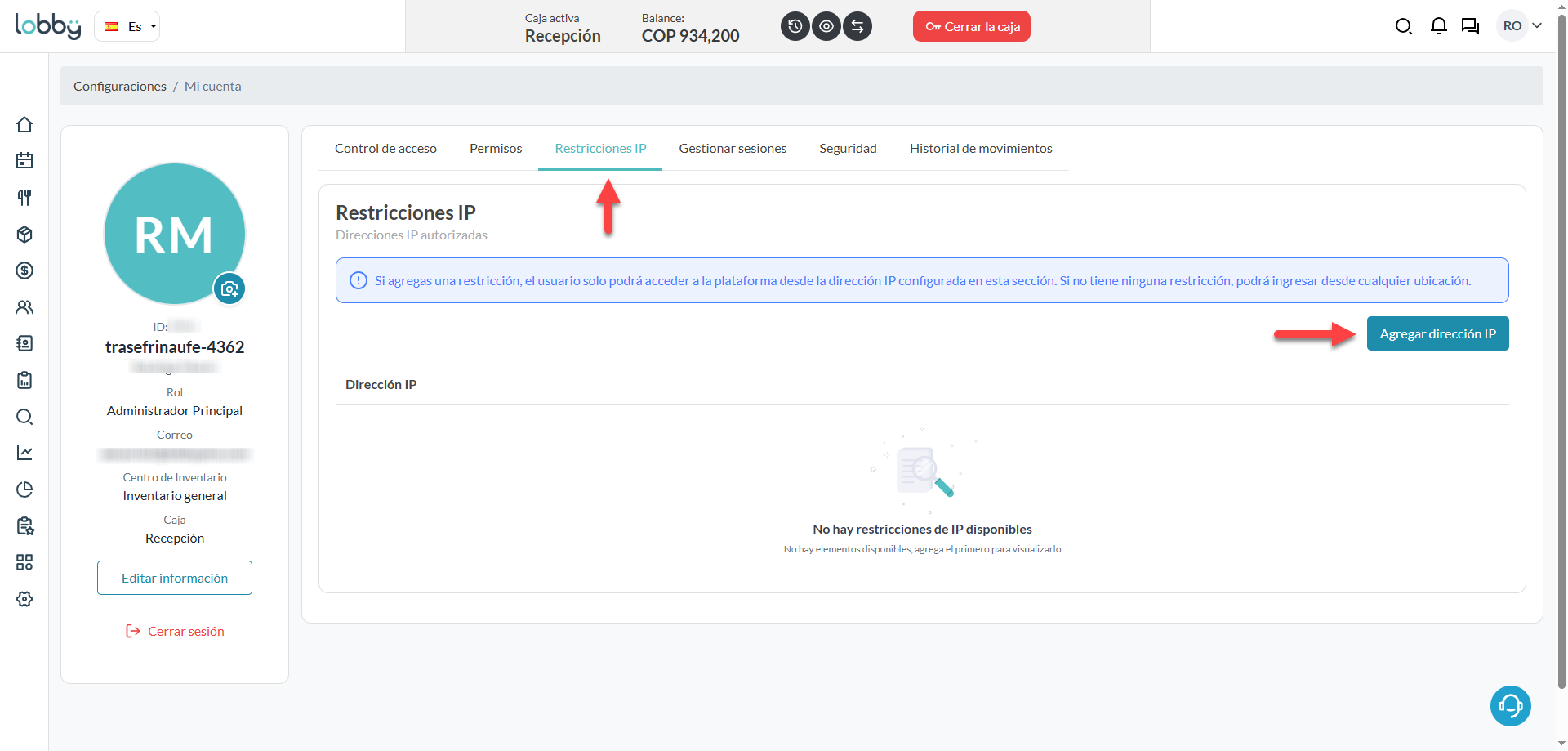 Importante: Si se configuran restricciones de IP, el usuario solo podrá ingresar desde las direcciones registradas.