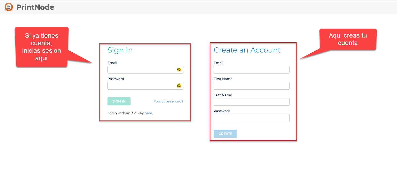 Para empezar, es necesario que abras una cuenta en PrintNode. Para ello, accede a la siguiente página y completa el registro: https://api.printnode.com/app/login/register.